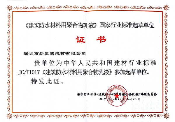 热烈庆贺我公司成为《建筑防水材料用聚合物乳液》的起草单位
