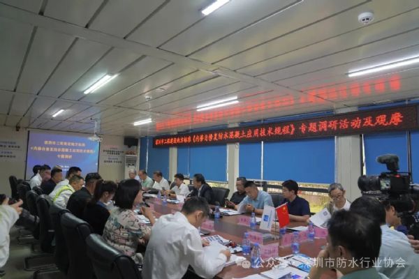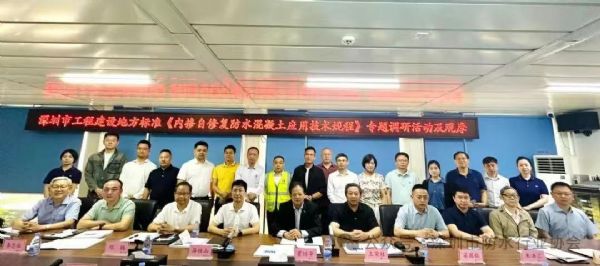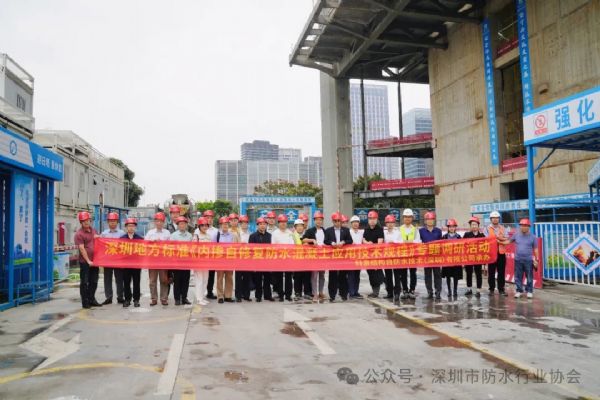 2024年4月11日,深圳市工程建设地方标准《内掺自修复防水混凝土应用技术规程》专题调研活动在深圳中建科工前海金控大厦项目部举行。 我公司董事长王荣柱先生同深圳市工程建设地方标准《内掺自修复防水混凝土应用技术规程》的主要参编单位代表、编制专家等30余人一同观摩了深圳中建科工前海金控大厦项目地下室侧墙防水工程。该项目内掺科洛抗裂剂解决温度裂缝,根据现场调研考察情况,已完工部分未出现开裂,受到项目总工、编制专家一致好评。随后,在项目部会议室召开座谈交流会。 标准主编、深圳市防水行业协会会长瞿培华主持会议并讲话。他逐一介绍了本标准的编制组成员,并提出要求:每位成员应尽责、尽心、尽力,符合深圳市工程建设地方标准制修订规矩和要求,紧贴国家标准《建筑与市政工程防水通用规范》GB 55030-2022与深圳地方标准《建设工程防水技术标准》SJG 19-2023,助力本标准顺利编制。 协会总工程师刘国华介绍了标准编制的最新进展,也期望各参编单位和专家能够积极配合协助标准的后续工作。标准主编、深圳市市政工程质量安全监督总站副站长蒋桂山讲话。他表示,深圳建筑行业的高质量发展需要我们共同出谋划策,2024年政府工作报告提出,大力推进现代化产业体系建设,加快发展新质生产力,在建筑行业的防水领域,本标准的制定和实施正是积极响应了这一号召,通过新材料、新工艺、新标准来有效提升防水工程的质量。会上与会人员就本标准的编制和防水项目工程展开了积极的技术交流。