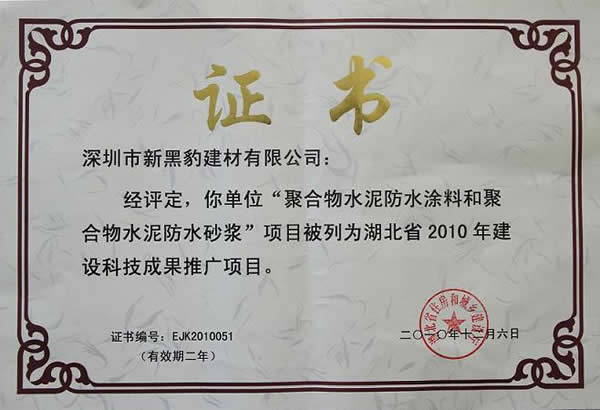 我公司聚合物水泥防水涂料和聚合物水泥防水砂浆被评为湖北省建设科技成果推广项目。